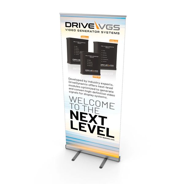 A sleek, retractable banner showcasing Drive Dynamix's key offerings, designed for maximum impact and easy setup at events and presentations.