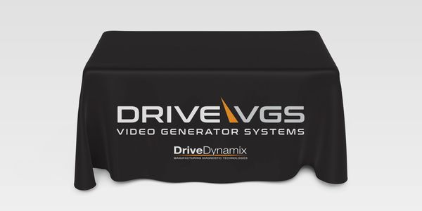 A custom-designed tablecloth showcasing the Drive Dynamix logo, adding polish and consistency to event setups.